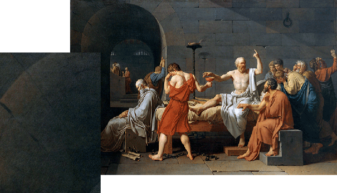 In this classical image we see the main figures in the foreground lighted by a large shaft of sunlight full of the detail we’d expect. Take a look at the detail insert I’ve added. The artist has included details in the deep shadow of the archway; again a situation that a camera can’t capture in a single exposure.