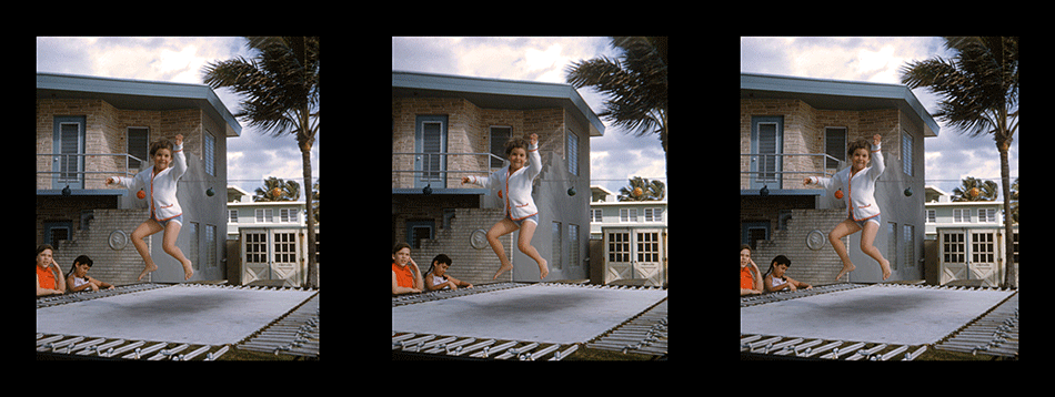 “Laurie on a Trampoline, Florida 1959№2”The girl with the dark hair is her sister Ellen. Stereo image by their dad Meyer.
