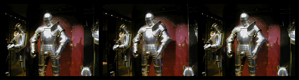 Inside the “White Tower” (the oldest building in the Tower of London) is a huge armory exhibit displaying period weapons that were manufactured in the Tower. On one floor is a large room where the armor and related equipment and accessories belonging to numerous Kings are displayed…It’s called the ‘Hall of Kings’.