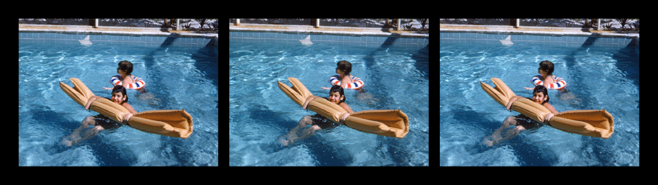 “Laurie and Ellen Zuckerman – 1959”This is a stereo shot of my wife Laurie and her sister Ellen on vacation in Florida in 1959. Their Dad owned a Kodak stereo camera and took a lot of stereo shots of the family. Laurie is the one with the ‘swimming ring’.