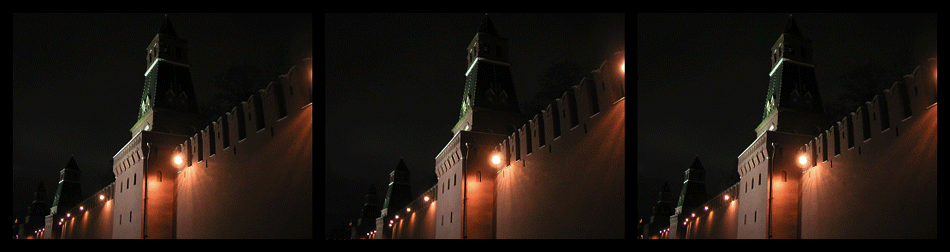 “The Kremlin Walls at Night”This shot was taekn around 11PM on March 3, 2003. A coulpe of colleauges and I decided to take a mildly drunken late night walk around the Kremlin right after a wonderful Russian dinner. It was COLD that night! The various guards along the wall only looked at us and grined. It was a fun and interesting walk. We across across numerous Soviet burial sites in the wall, memorials and historical markers.
