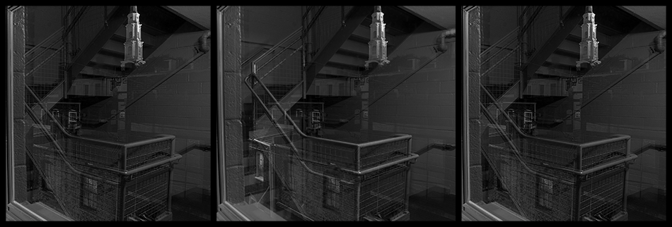 “Savannah Stairwell №1”This shot was taken late at night in a stairwell of the place we were staying in Savannah, Georgia in April 2013. Not only is it a night shot it’s also an HDR image (see my HDR Page for more info). This stereo image has several levels of depth in it due to the reflections in the window. It may take a little practice to peroerly see the 3D effect.